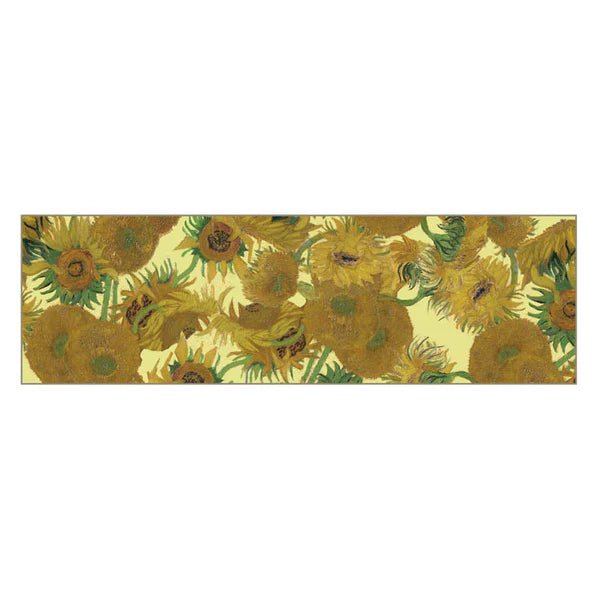 A silk scarf in rich mustard yellows after the image most associated with Vincent Van Gogh of Sunflowers. This version is owned by the National Gallery in London.
