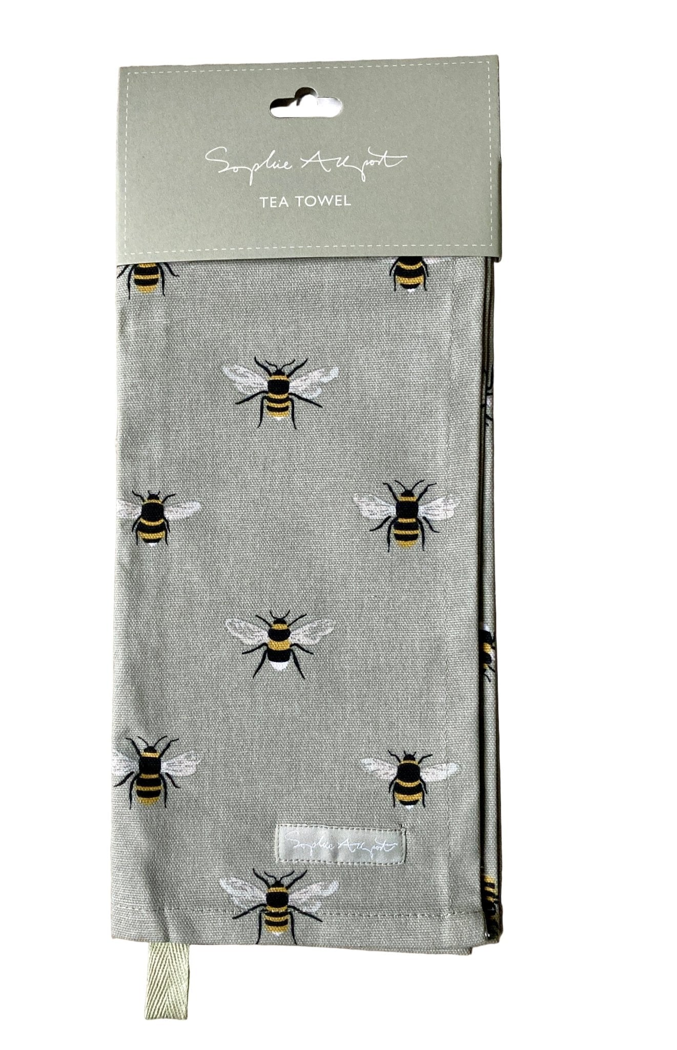 Brighten up your kitchen with a tea towel covered in bees on a pale green background, it will make your drying up a bit more enjoyable.